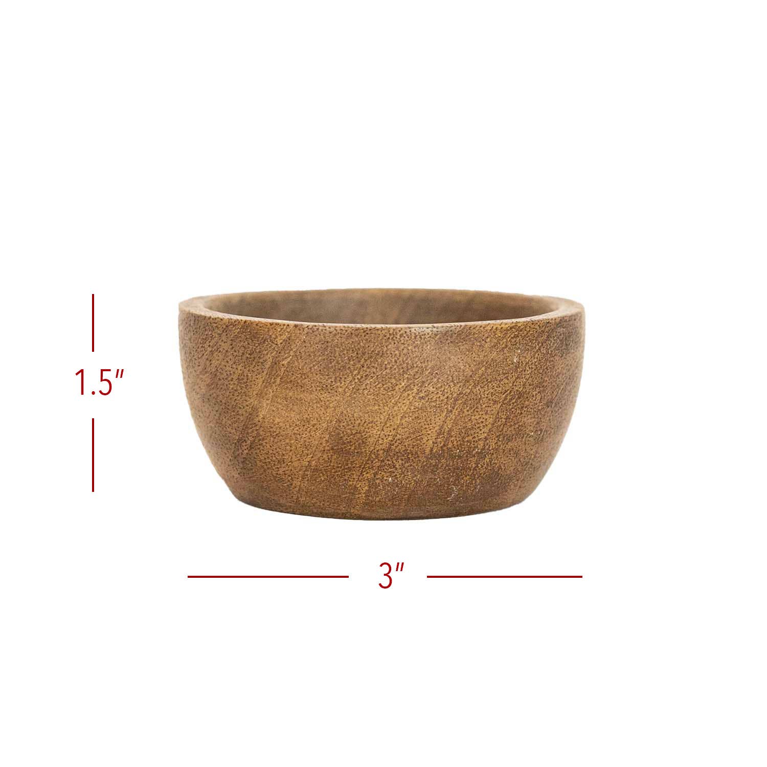 Spices, seasonings, spreads, and dips can easily be a part of your next entertaining spread with this set of three pinch bowls. Each bowl is crafted from sustainable mango wood, and the natural wood finish offers a neutral option to fit seamlessly with most decor styles.