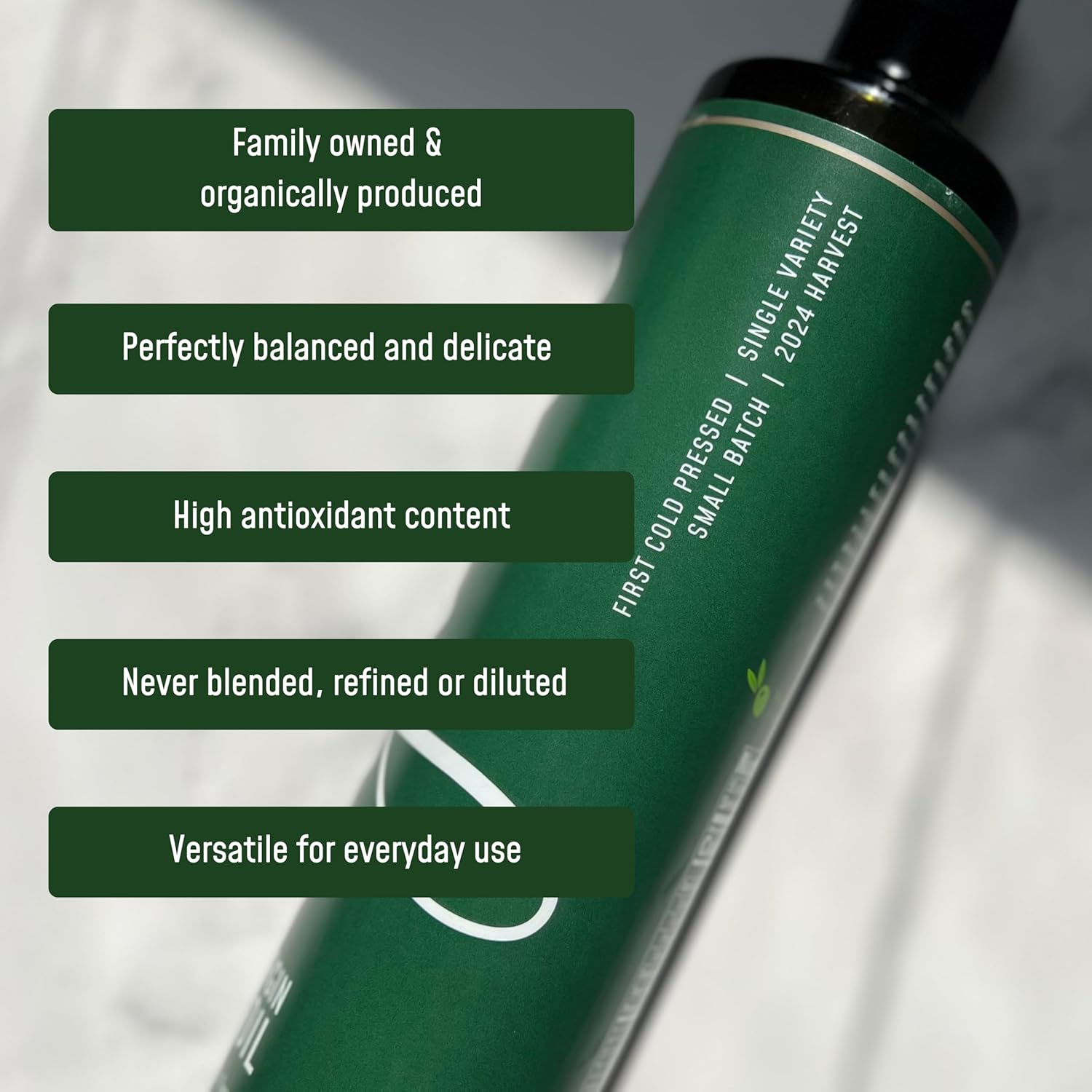 - Grown on family farms that practice organic farming methods. This winter 2024-2025 harvest had zero detectable pesticides in an independent International Olive Council-approved lab analysis.