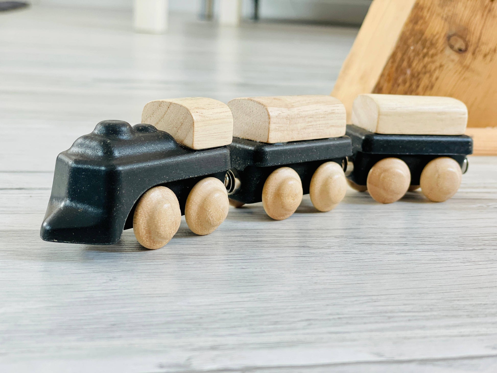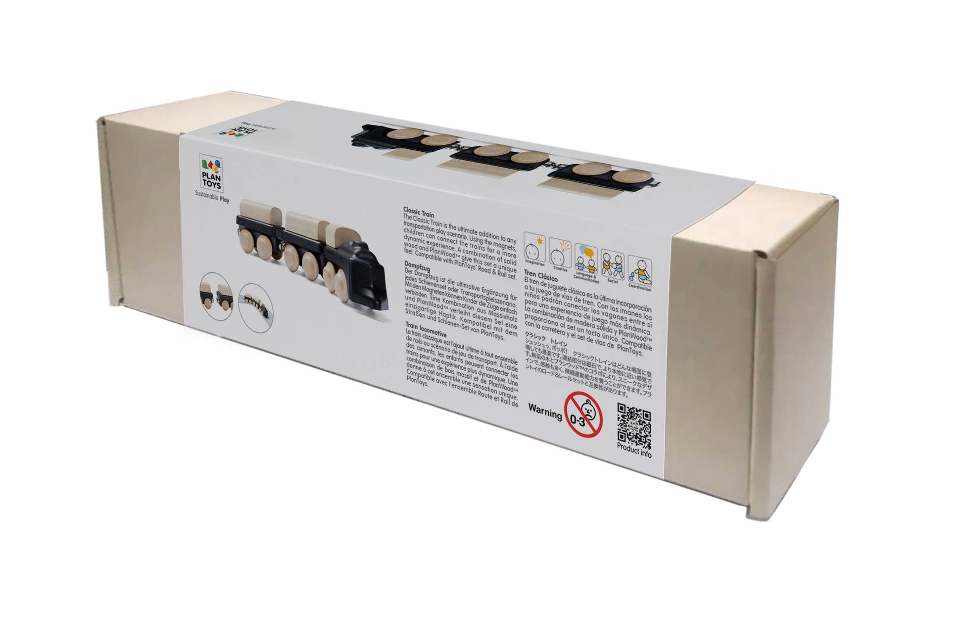 Choo, choo! The Classic Train is the ultimate addition to any rail set or transportation play scenario. Using the magnets, children can connect the trains for a more dynamic experience. A combination of solid wood and PlanWood give this set a unique feel, so kids can improve their sensory and fine motor skills. Compatible with PlanToys� Road & Rail set.