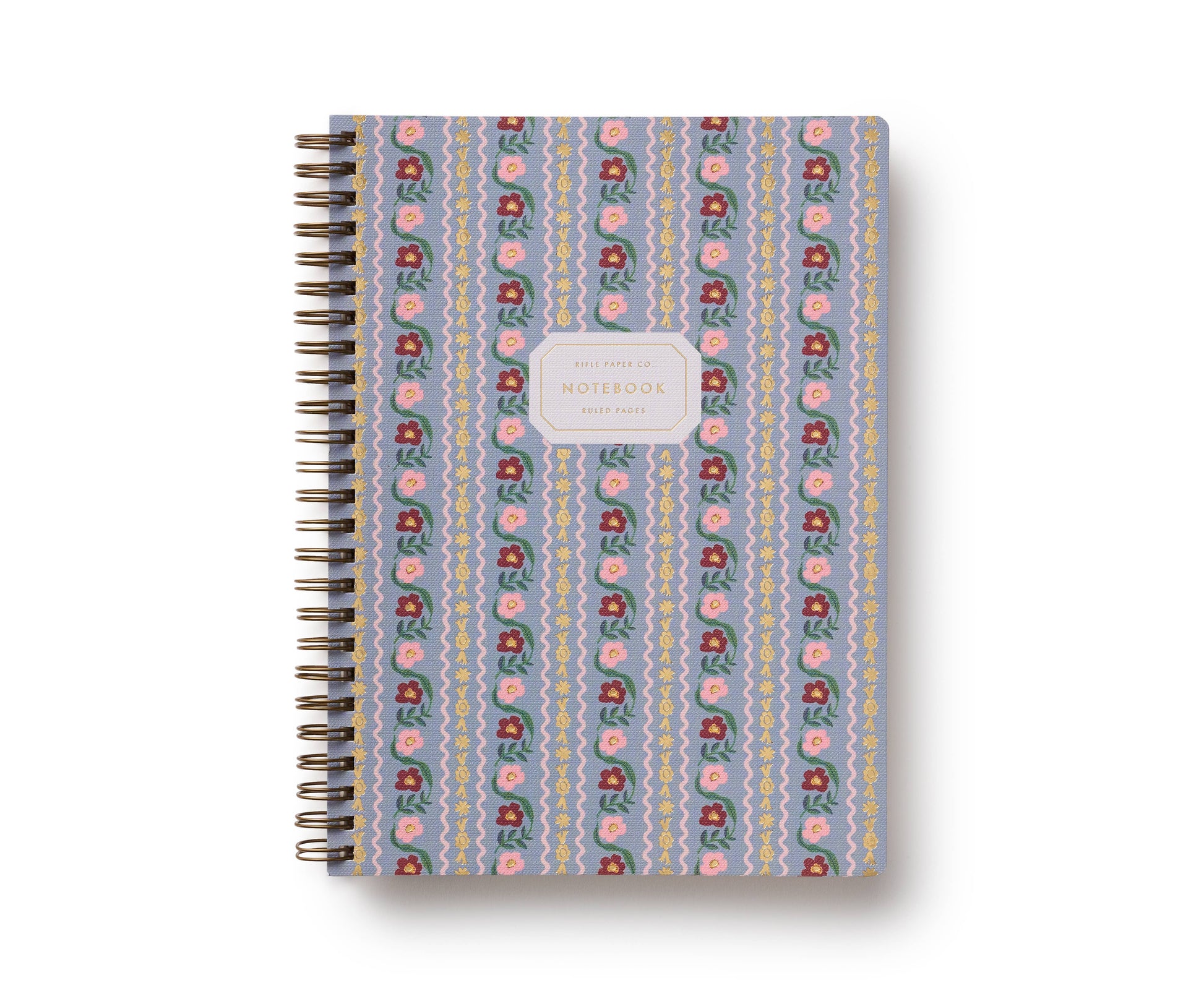 Printed on heavy-weight textured paper, this softcover spiral notebook features an illustrated cover with gold foil accents. The notebook has 150 ruled, perforated pages, a sturdy double-spiral binding, and pockets for extra storage.