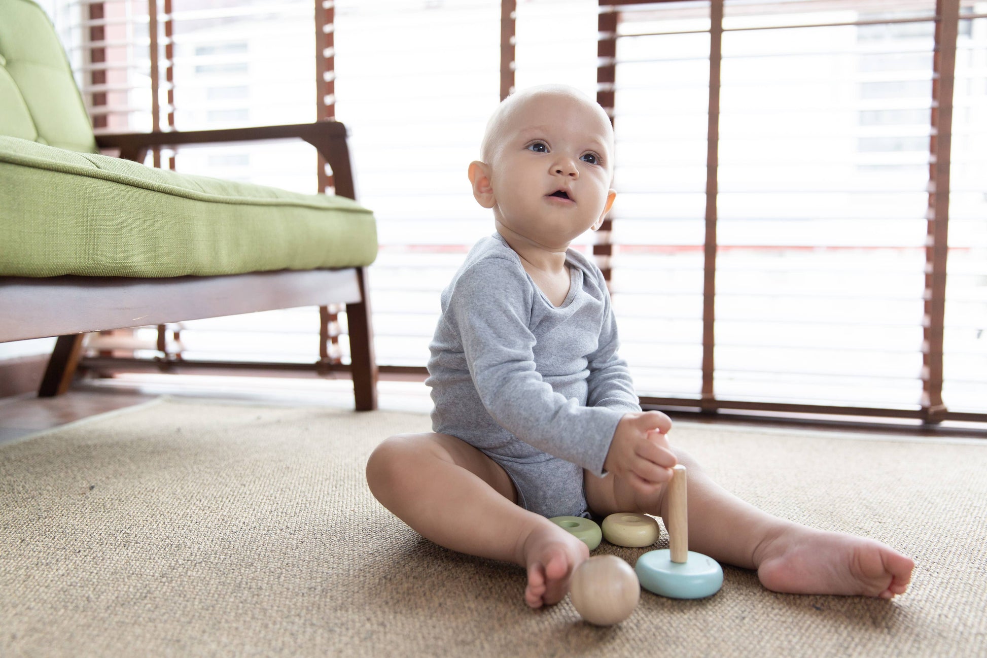 Start learning about the size and order with this stacking ring. For safety precaution, the center rod is foldable.