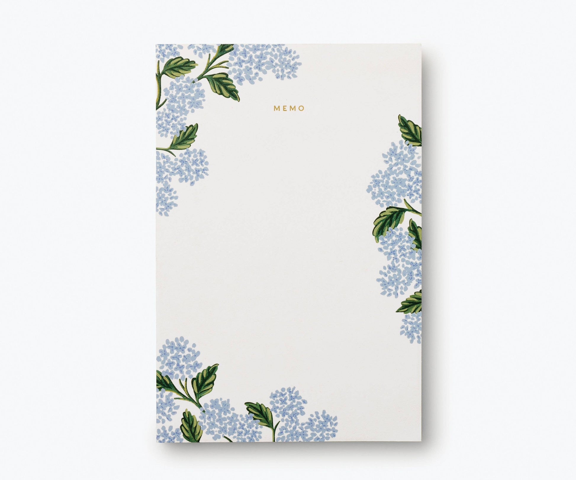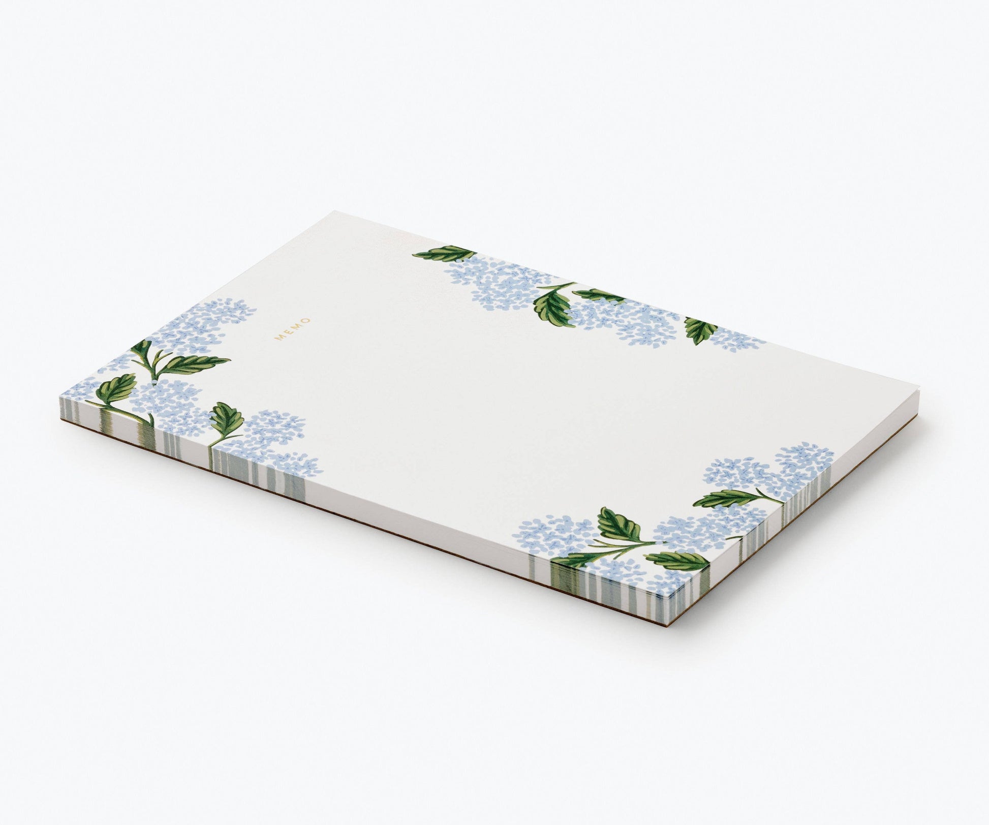 Graceful, blooming hydrangeas decorate this oversized notepad, which features 65 tear-off sheets and gold foil on every page.
