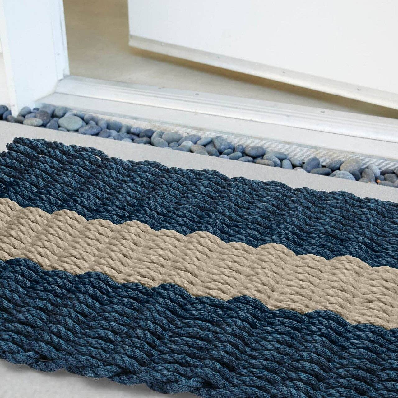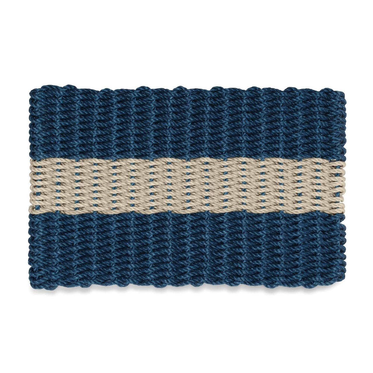 Lobster Rope Outdoor Doormat: Navy with Sand Stripe