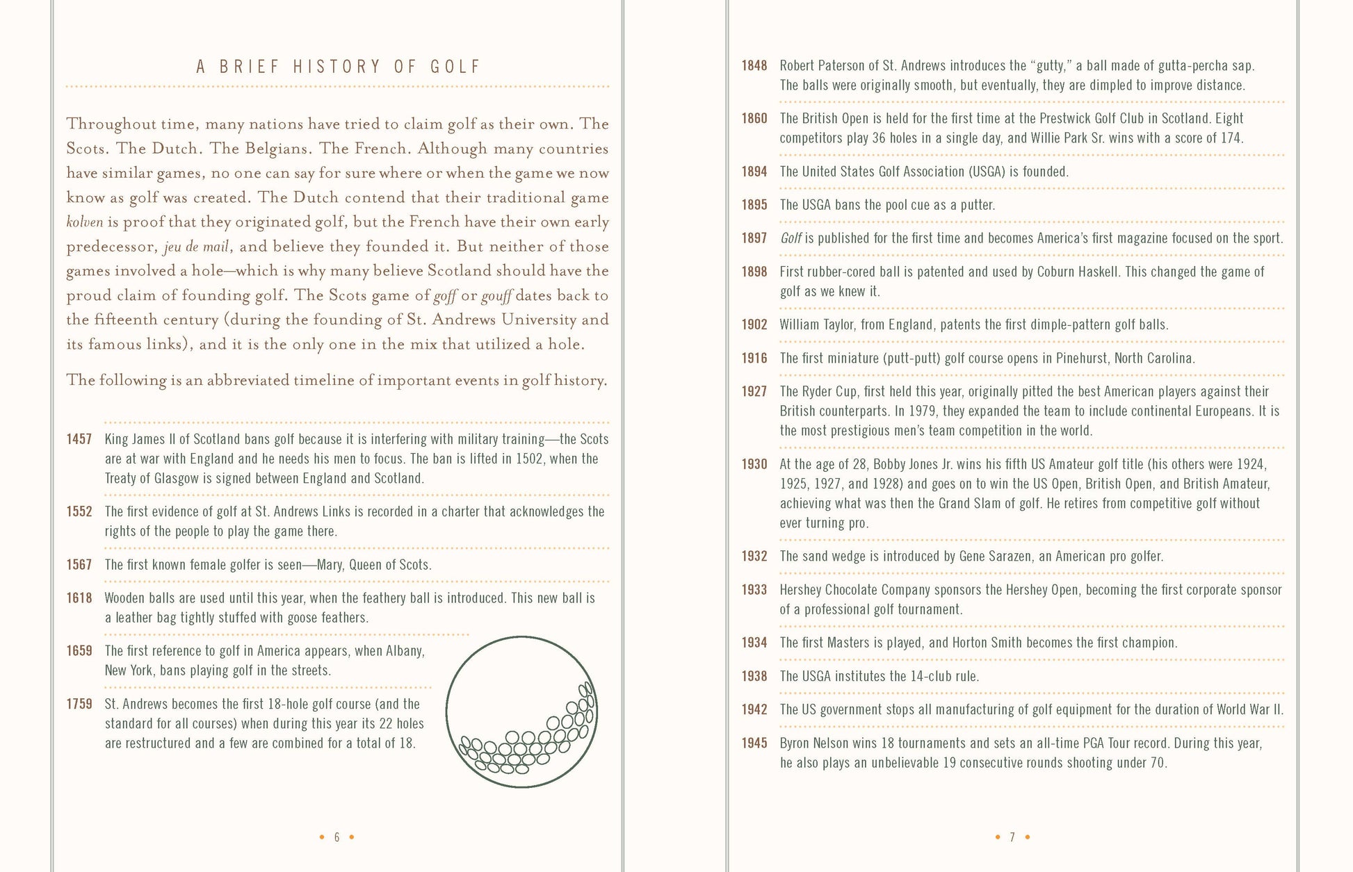 This classy journal contains all the tools and guidance a golf enthusiast of any level could ask for, from score sheets to practice range records and equipment logs, as well as sections to record local course information, golf advice, and your favorite 19th holes. Now, with everything you need to know in one place, you're sure to take strokes off your game in no time!